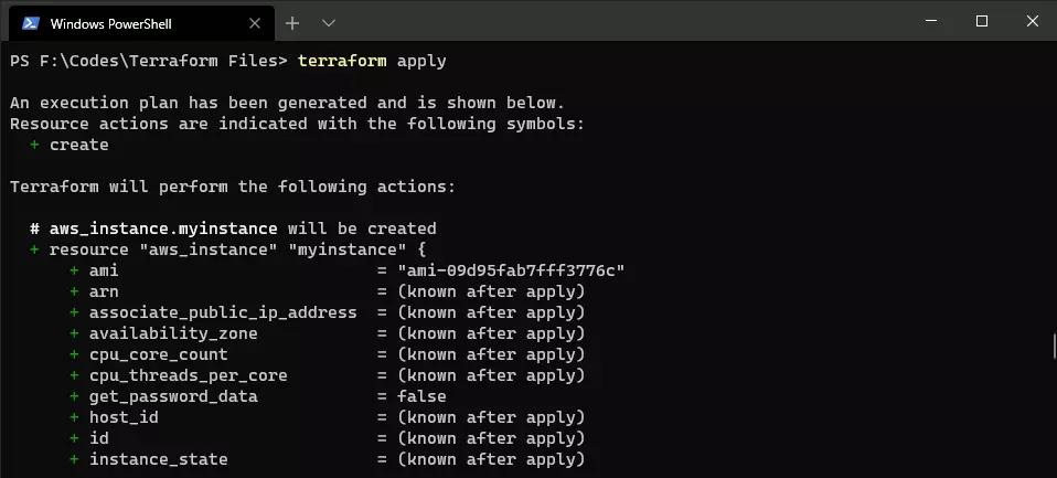 Save this file as myfile.tf in the desired workspace and open the command prompt to the location and write command terraform init this command is so smart that it will check the .tf file and download the required modules to run the file.